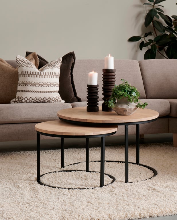 Hjellegjerde Høy hjørnesofa3 seter + stort hjørne + endemodul, armlen 28, stoff Domino velg farge