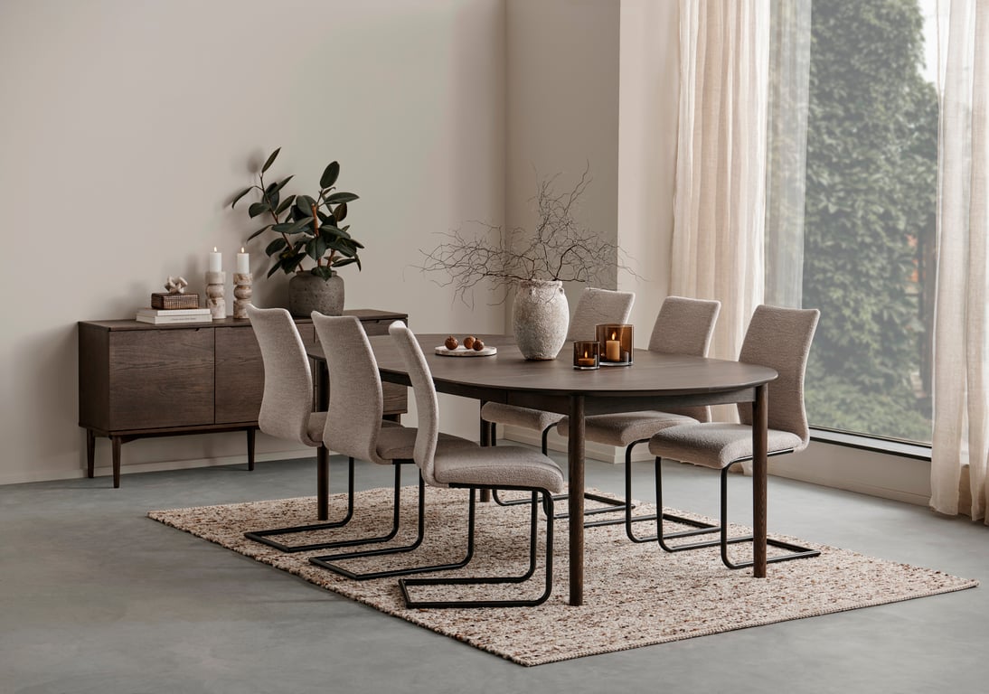 Brunstad Choice Høy 3,5 seterModulsofa. Stoff Dixie Beige, arm 001, Ben 207 svartlakkert
