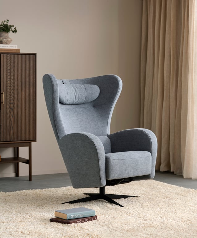 Sone dyp hjørnesofaModulsofa. 2,5 seter + hjørne + relax, armlene W3 i stoff Atlas natur m/duntopp
