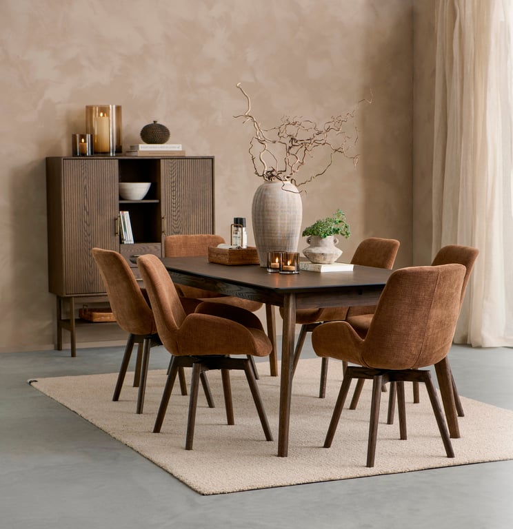 Kingston spisebord kombinerer klassisk design med førsteklasses håndverk. Den solide bordplaten i finert eik med heltre kanter skaper en tidløs eleganse.