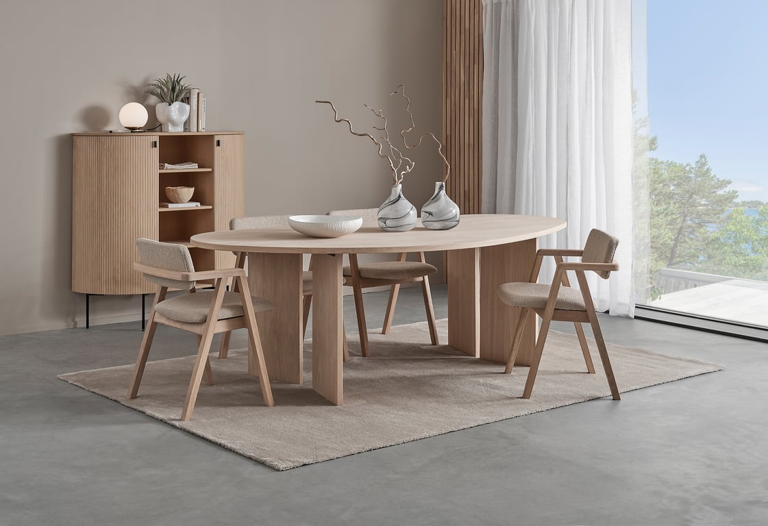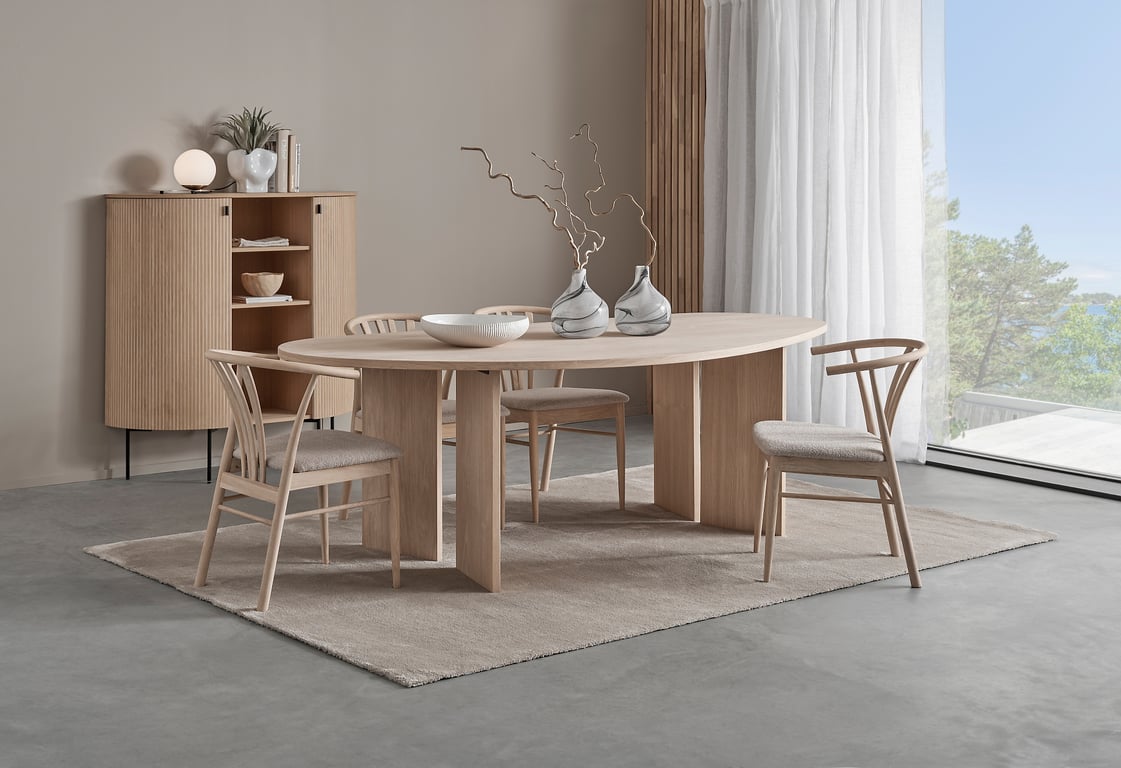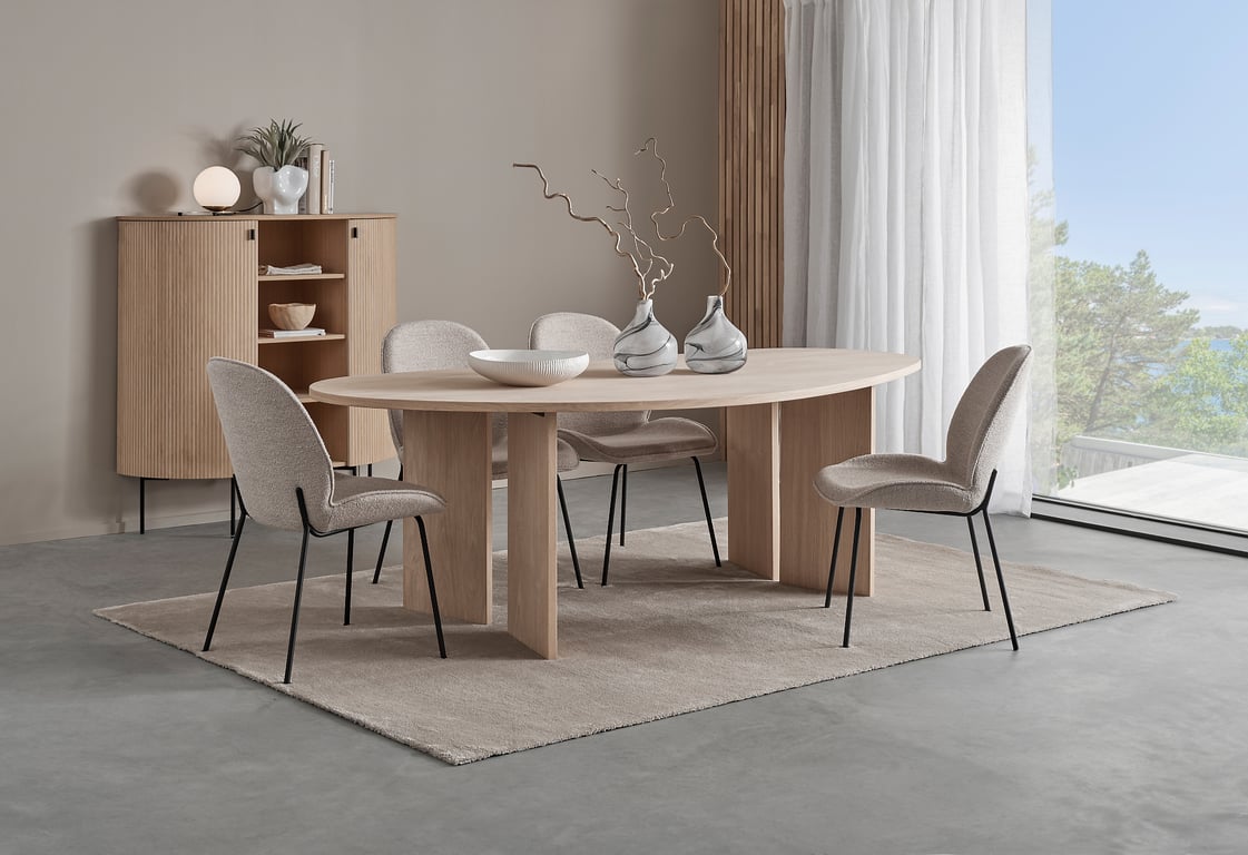 Linea ovalt spisebord 180 x 102 cm m/syncrouttrekk, lys naturoljet
