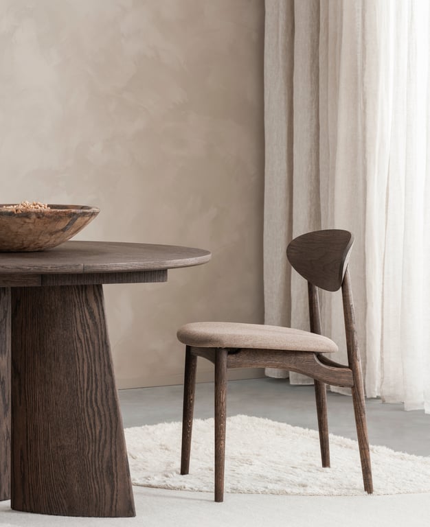Japandi serien har et innbydende design kombinert med god kvalitet i finert oljet eik. Ved bestilling i svart er det alltid matt lakkert. Serien tilbyr rundt spisebord med uttrekk for plater, matchende sofabord, spisestol, skjenk, høy skjenk, skrivebord. Flere farger å velge i.