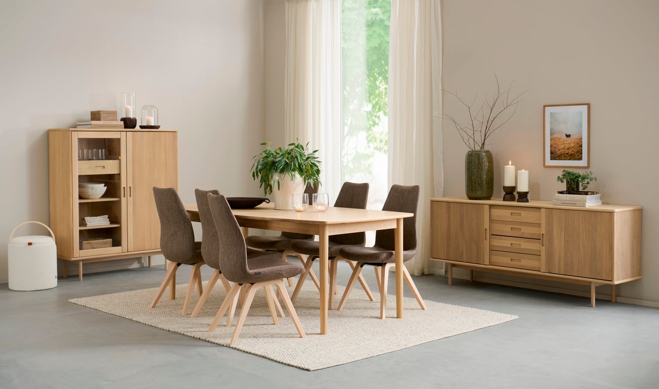 Linden-serien kombinerer høykvalitets håndverk med gjennomtenkt funksjonalitet og et nordisk preg. Serien inneholder spisebord, skjenker, vitrineskap og tv-benk designet for å gi både rom og sjel til hjemmet. Materialvalget legger vekt på varme toner og naturlige overflater slik at møblene passer godt inn i flere interiørstiler.