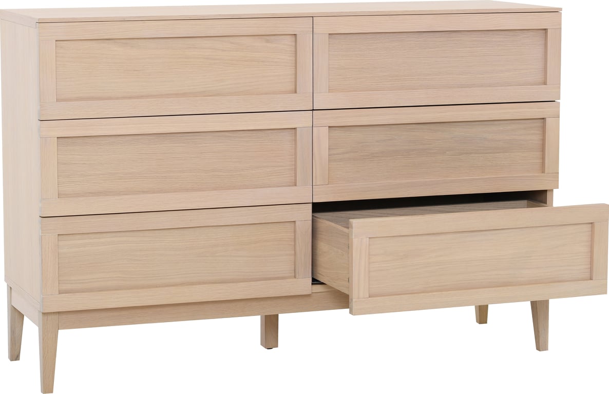 Stilren kommode i hvitpigmentert eikefiner med 3 skuffer