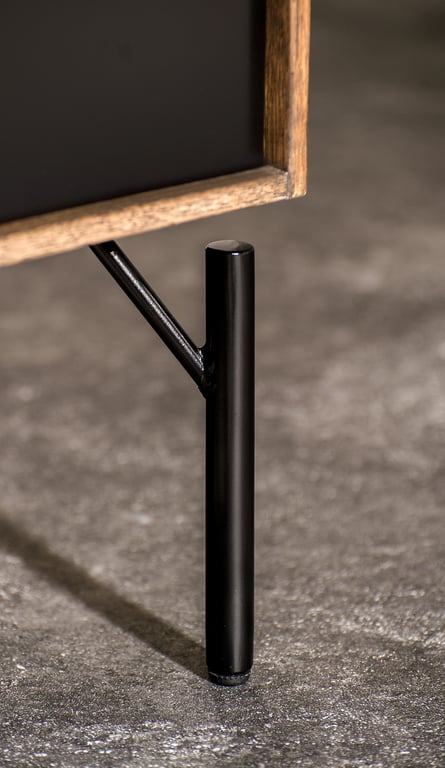 Denne skjenken er laget av heltre eik i hvitoljet utførelse, med vakre fingerskjøtte hjørner som gir et elegant preg. Dørene og skuffene har softclose-mekanisme, slik at de lukkes mykt og stille. Skjenken kan også monteres på veggen ved hjelp av medfølgende veggmonteringsliste. I tillegg til eik heltre hvitoljet, er skjenken også tilgjengelig i utførelsene eik heltre naturoljet, lys røkt og mørk røkt. Det finnes flere forskjellige typer ben som kan monteres på skjenken.