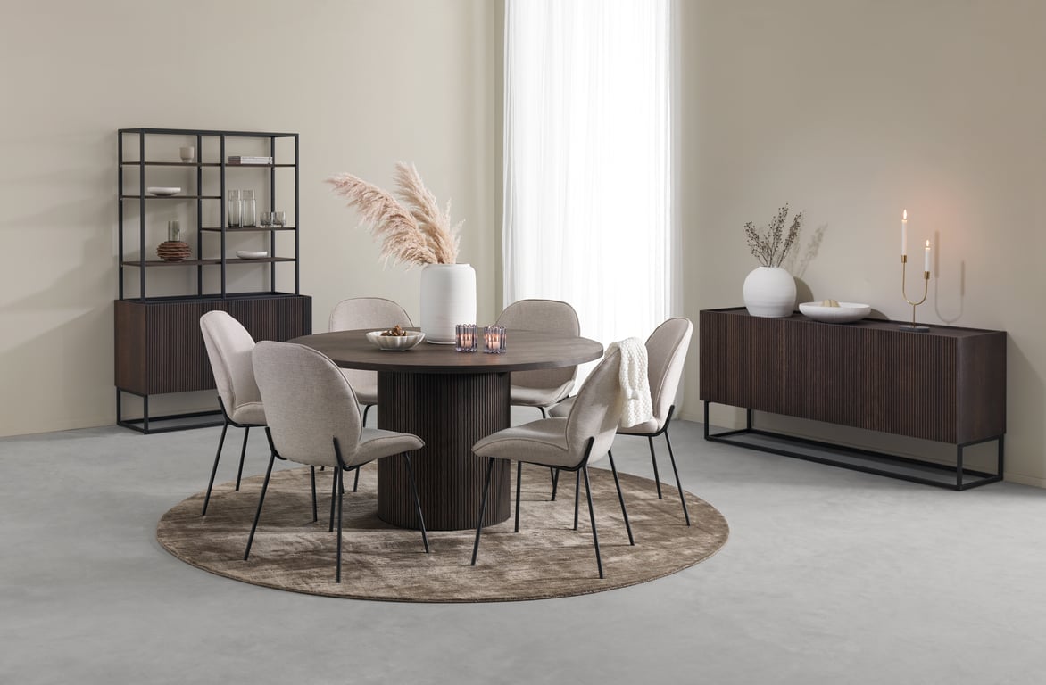 Olivia spisestolStoff Alpine beige, svarte ben