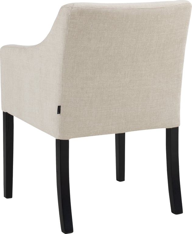 Nobel® spisestol med rett arm kombinerer god sittekomfort med et moderne uttrykk. Sete i kaldskum og polstret rygg gir støtte gjennom lange måltider. Stolen kan tilpasses med ulike tekstiler og benfarger, og er en del av vår helhetlige serie, Nobel®.