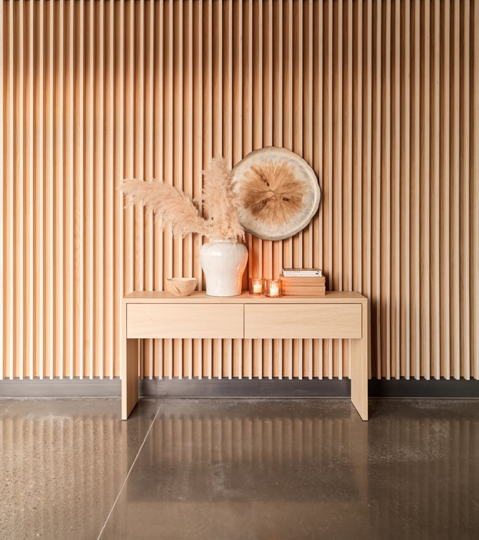 Orwel konsollbord lav140xH45 beige travertin/hvitpigmentert eik