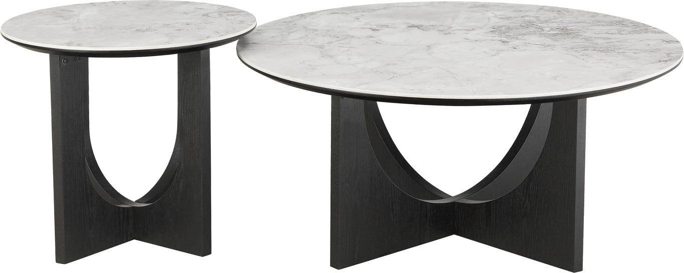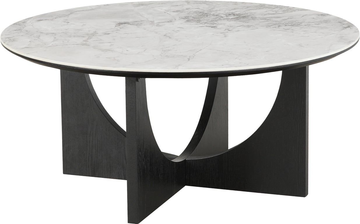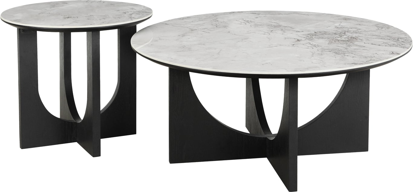 Malaga sofabord Ø50Grålig keramikk topplate, svart MDF/ask-understell.