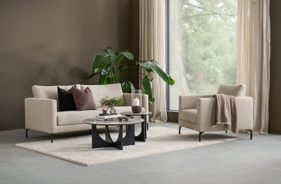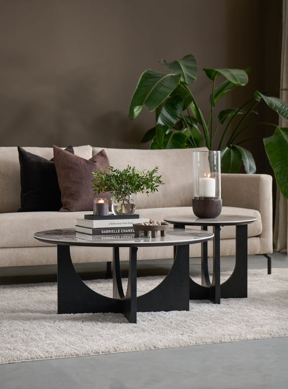 Marsden sofabordrundt Ø90 beige keramikk/brun eik