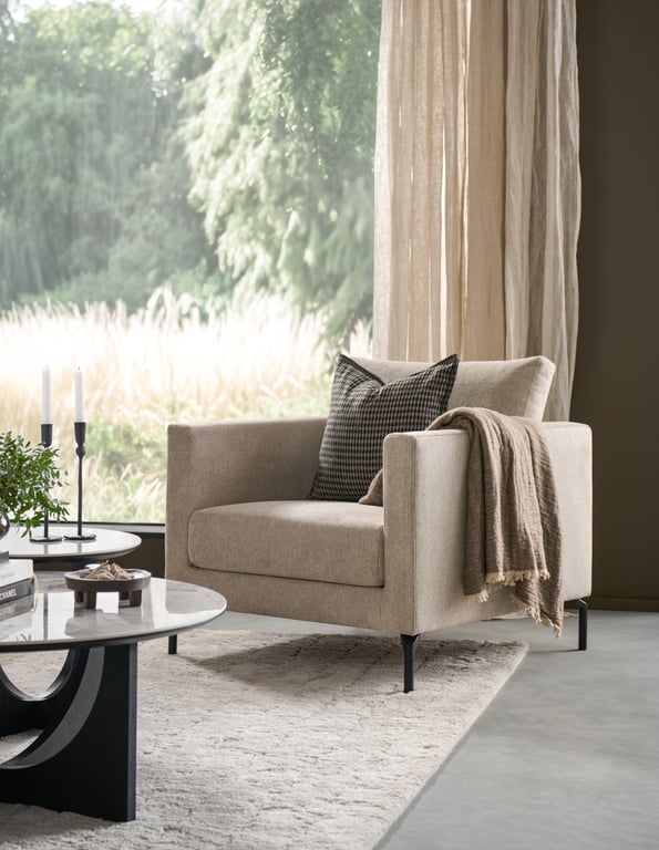 Marsden sofabordrundt Ø90 beige keramikk/brun eik