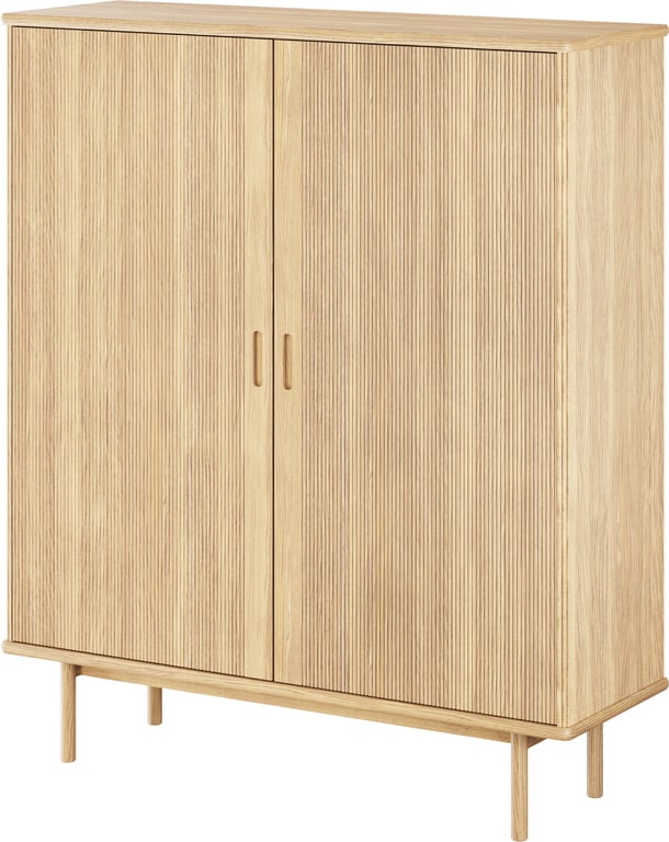 Birk Høyskap120x140x40 cm med 2 rillede dører, eik / naturolje