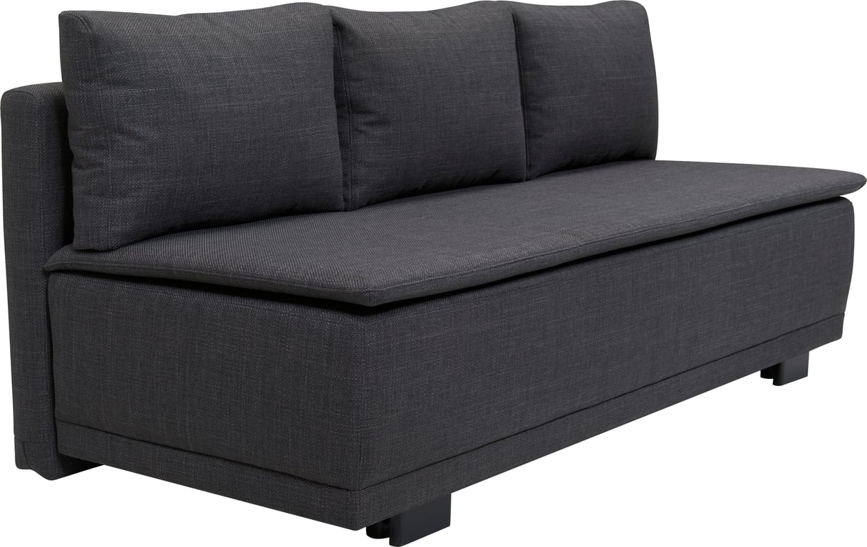 Oppdag den moderne Aksel sovesofaen med oppbevaring - en smart løsning for de med litt mindre plass. Denne 3-seter sovesofaen gir deg en behagelig sitteplass og en romslig oppbevaringsplass til dyner og puter på dagtid.