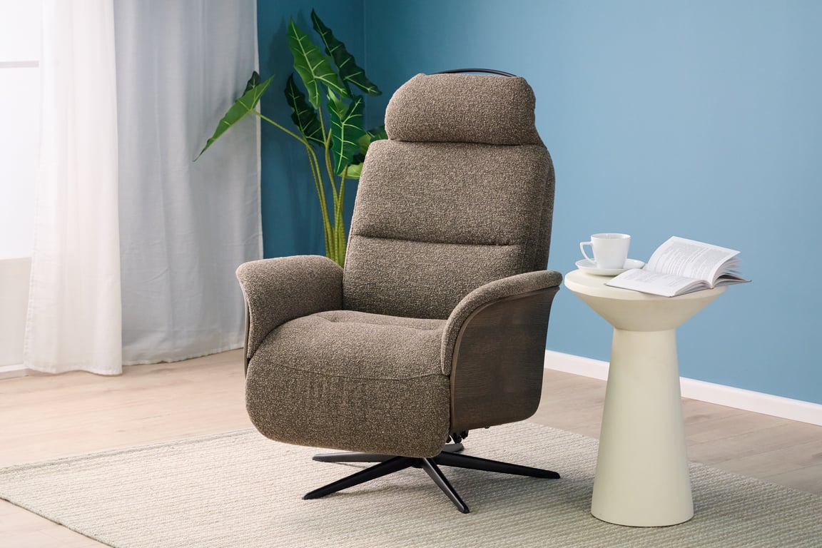 Myk og komfortabel lenestol med Duotech komfortskum i sete og rygg. DuoTech er et mykt spesialskum som kombinert med kaldskum i bunn gir en unik sittekomfort med høyere elastisitet og lengre holdbarhet! Myk, men allikevel med god støtte og avlastning som gir kroppen god hvile. Utstyrt med 360° sving, regulerbar rygg, integrert fothviler og manuelt justerbar nakkestøtte. Dekorative treplater på utsiden kan velges i flere farger, og det finnes flere valgmuligheter for understell, inkludert høydejusterbare varianter.